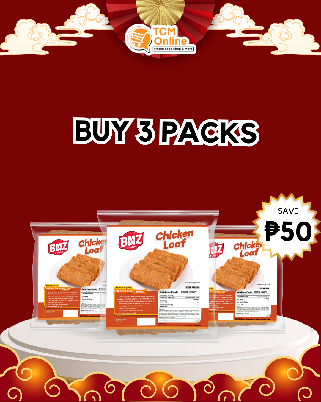 BNZ Buy 3 packs of Chicken Loaf Less ₱50